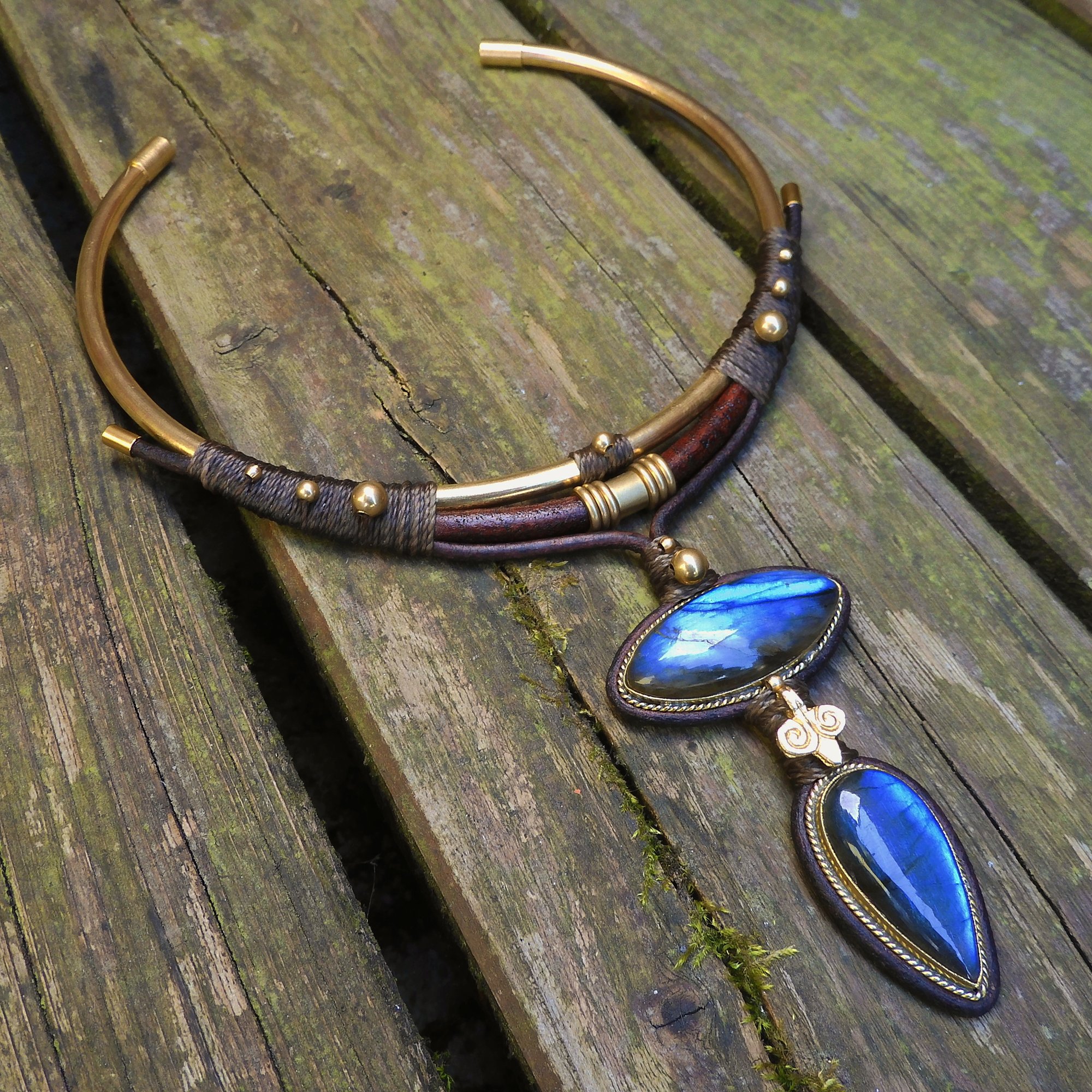 -> Pendant length measures 10cm from brass torque to end of bottom stone.