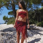 --> Perfect for festivals! Features a wine red lace mixed with dark purple and burgundy colours. Soft lightweight layered look with long flowy straps on the side.