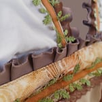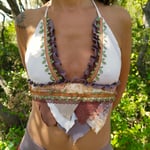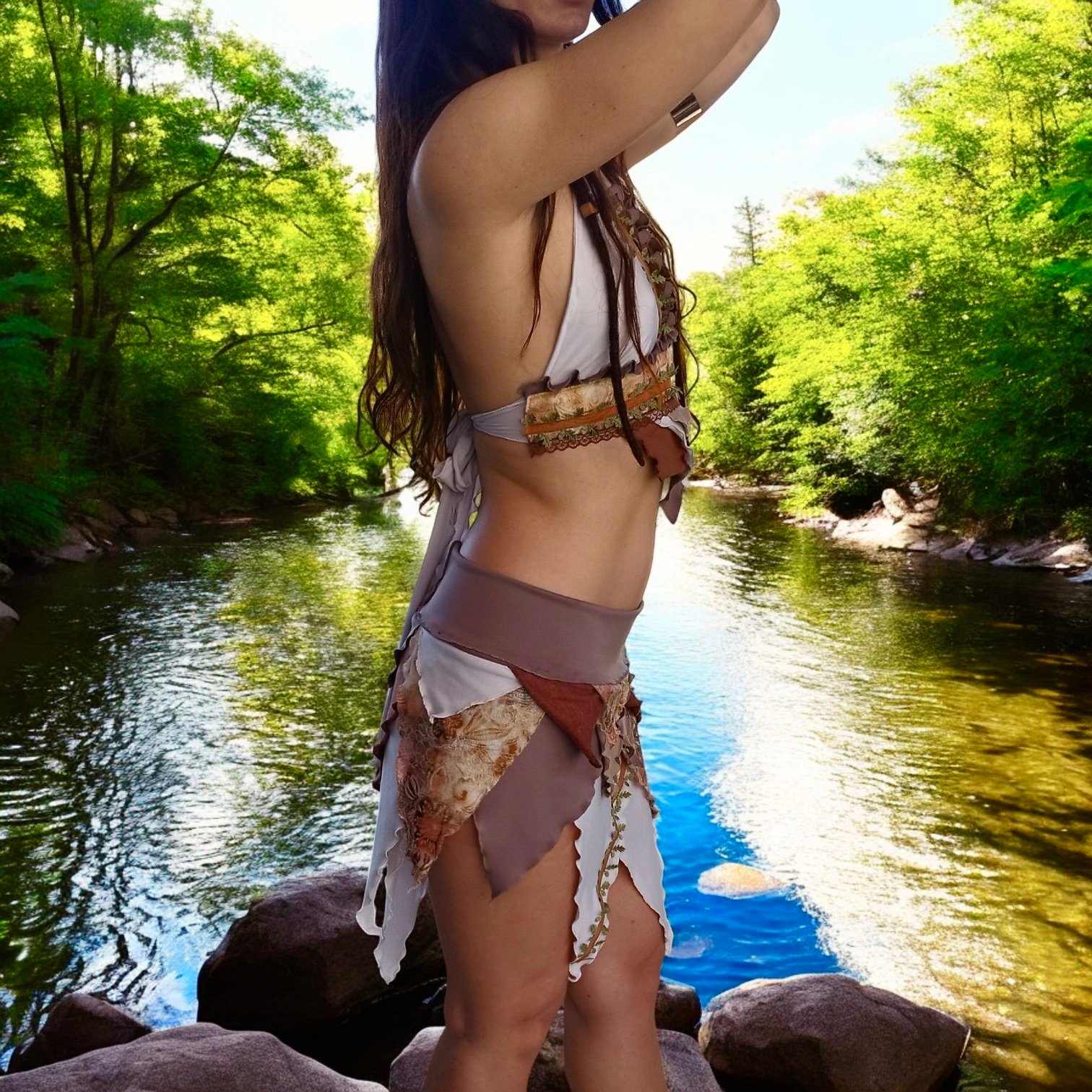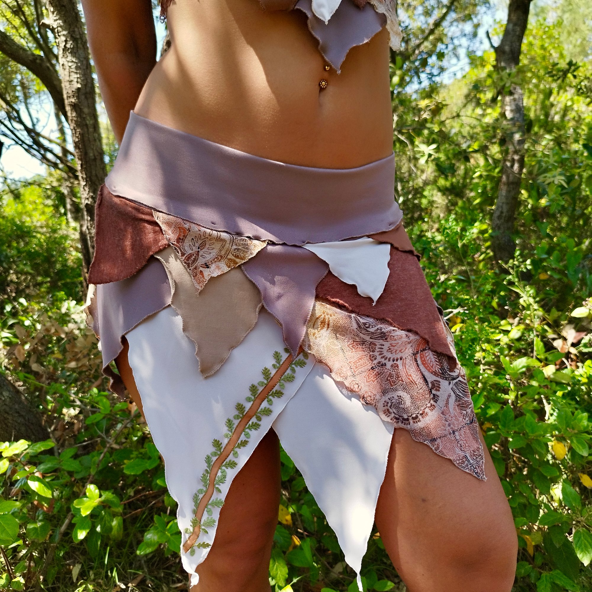 Dark beige, light beige, earthy warm paisley leaf set with layered textures and colours, a soft stretchy belt, and light fabric that feels weightless. Enchanting, ethereal design perfect for fairy, festival, and earthy fashion.