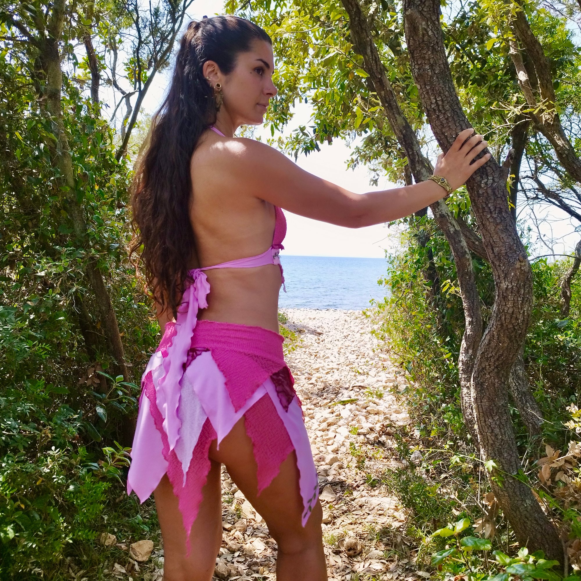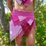Mixed pink and burgundy fairy leaf set with layered textures, soft stretchy belt, and ultra-light fabric that feels weightless. Enchanting, ethereal design perfect for fairycore fashion.