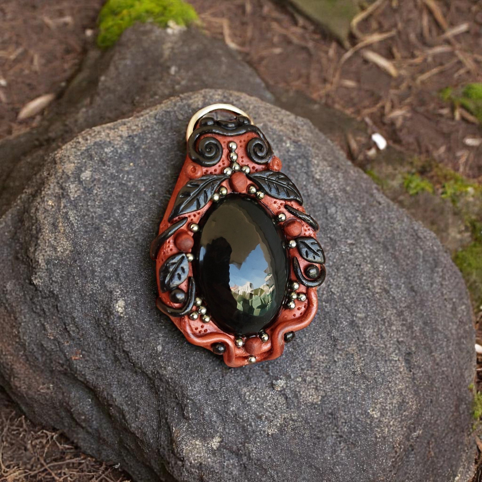 Striking red and black obsidian pendant, handcrafted for bold energy and grounding style.