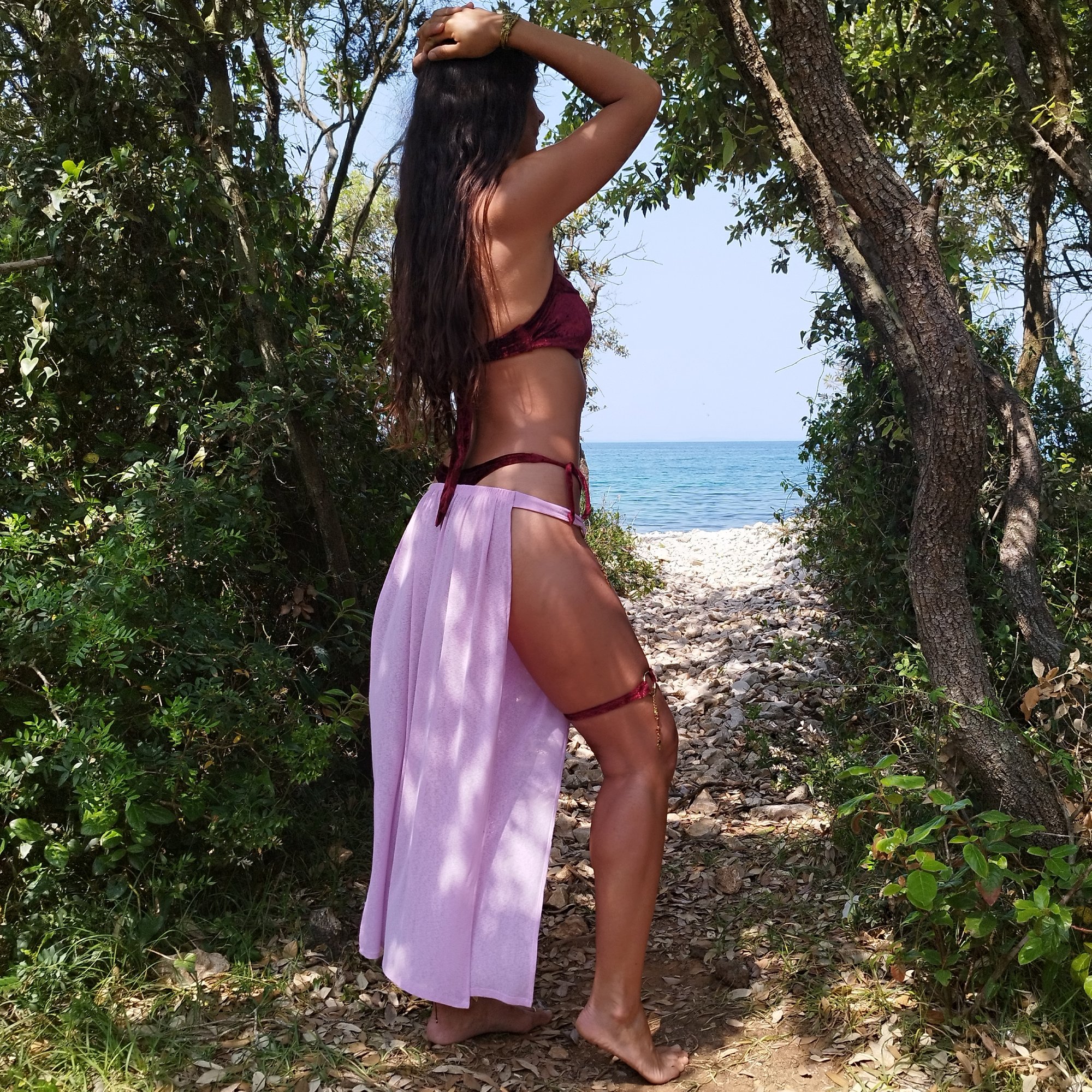 Goddess panel set, perfect for festivals and belly dancing. Flowing, bold design with divine, empowered energy. Stretchy belt and ultra lightweight fabric.
